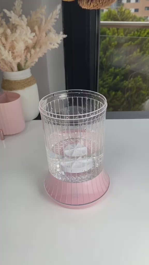 Pinsel in den passenden Aufsatz stecken, in die Reinigungsschale halten und Knopf drĂŒcken â reinigen & trocknen in einem Schritt.